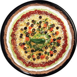<p>Refried beans, sour cream, guacamole, pico de gallo, colby jack cheese, tomatoes, black olives, and green onions.</p>