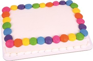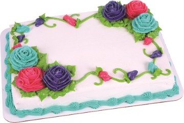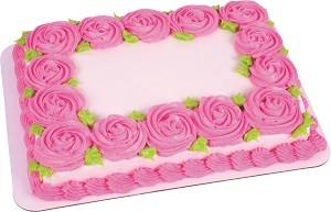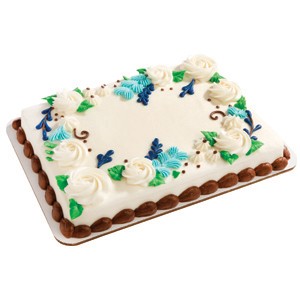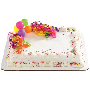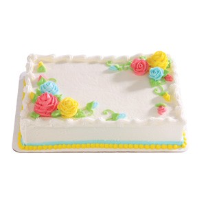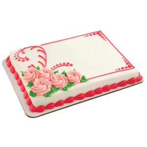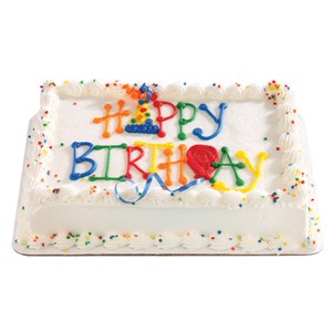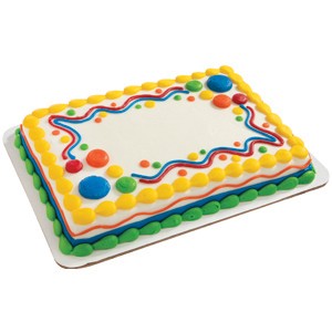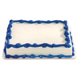 <p>A sheet cake decorated with an icing border. Choose cake, icing, border color and custom message. Filling available at no additional cost. Serving size based on 2" x 2" slices.</p>